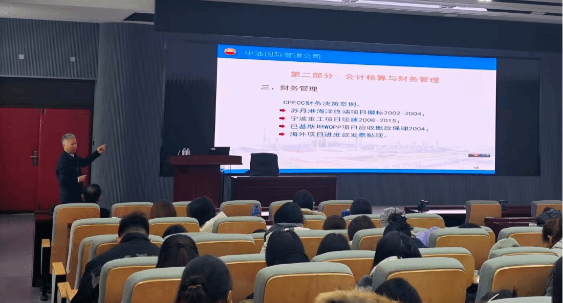 为强化会计硕士(MPAcc)实践能力培养,着力推动校企协同育人机制建设。2025年11月8日,经济管理学院成功举办MPAcc实务专家大讲堂。本次活动特邀中油国际管道公司党委委员、总会计师刘桂华作《国际工程项目财务管理与纳税筹划》专题讲座。2024级与2025级MPAcc学生参加了本次活动。
